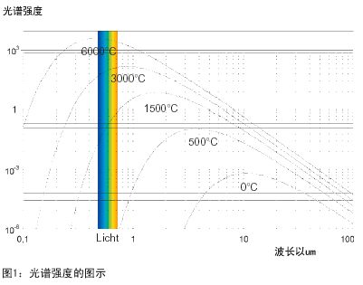在特定的窄波段范围中使发射率保持在30%-45%之间,这样就可以用非接触方式测量350°C 以上热铝料的温度。该测温仪具有很高的测量精度。即使其发射率有很小的误调,测温仪所测得的温度与传统的测温仪相比误差要小很多。在物理学的角度上,IS12-Al在其初始测温范围时对于外部光(日光、萤光灯或白帜灯泡等)敏感。因此在测量温度达到650°C时,一定要防止这些外部光对它的影响。(见图2).如果被测量的物体需要照明,那么可使用灯泡和蓝色滤光镜,这样干扰辐射就会被过滤掉。